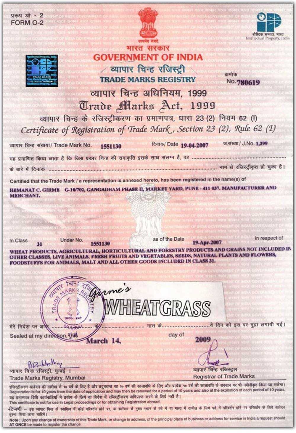 Trade Mark Certificate