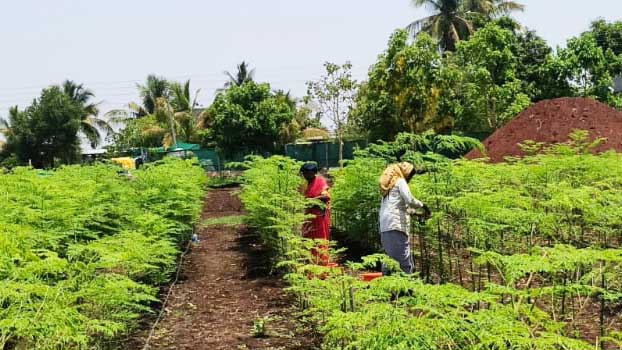 Moringa Oleifera trees are grown densely for Moringa leaves cultivation in our Girme’s Organic Farms at Vill. Anandnagar, Po. Akluj, District Solapur, State Maharashtra, India.